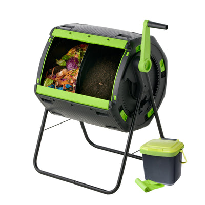 The best Kitchen to Compost deal in NZ! Our 180L Geared Compost Tumbler WITH 7L Kitchen Caddy and Bags by Maze valued at $17.00 transforms leftover waste and garden refuse from your Kitchen to your garden. Creating a rich, nutrient-dense compost with next to no effort at all.